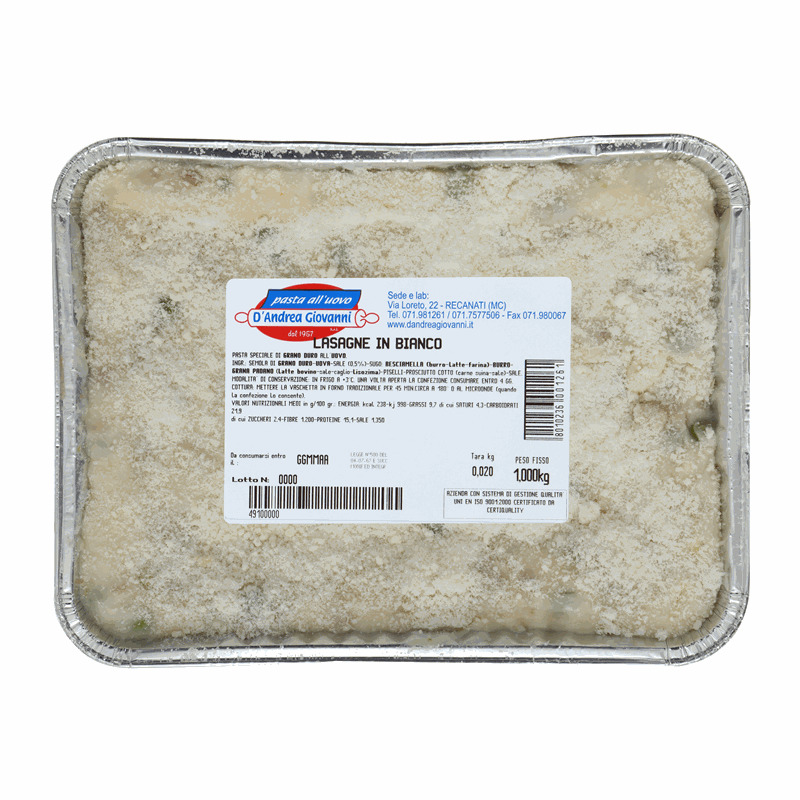Lasagne bianche pronte da cuocere in vaschetta da 1 kg